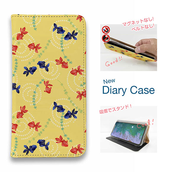 スマホケース 手帳型 ベルトなし マグネットなし iPhone17 Pro Max iPhone Air iPhone16e Pro Max 16 Plus 15 Pro Max 14 Plus Xperia 10 VII Galaxy AQUOS Pixel10 Pro XL 釣り 魚 ルアー 泳ぐ金魚 黄色
