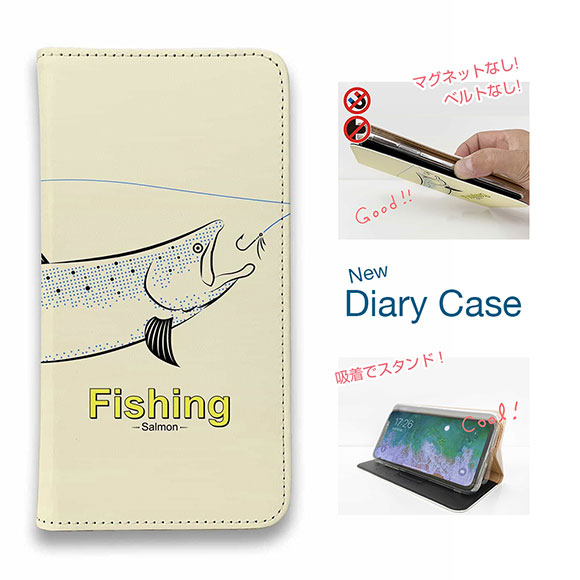 スマホケース 手帳型 ベルトなし マグネットなし iPhone17 Pro Max iPhone Air iPhone16e Pro Max 16 Plus 15 Pro Max 14 Plus Xperia 10 VII Galaxy AQUOS Pixel10 Pro XL 釣り 魚 ルアー レトロフィッシング