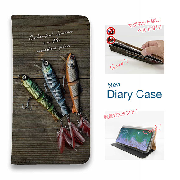 スマホケース 手帳型 ベルトなし マグネットなし iPhone17 Pro Max iPhone Air iPhone16e Pro Max 16 Plus 15 Pro Max 14 Plus Xperia 10 VII Galaxy AQUOS Pixel10 Pro XL 釣り 魚 ルアー カラフルルアー その2