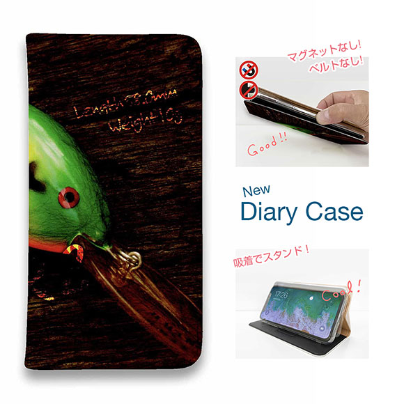 スマホケース 手帳型 ベルトなし マグネットなし iPhone17 Pro Max iPhone Air iPhone16e Pro Max 16 Plus 15 Pro Max 14 Plus Xperia 10 VII Galaxy AQUOS Pixel10 Pro XL 釣り 魚 ルアー ダイワ バスジャッカー2