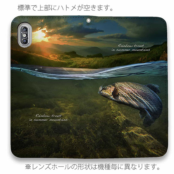 スマホケース 手帳型 ベルトなし マグネットなし iPhone17 Pro Max iPhone Air iPhone16e Pro Max 16 Plus 15 Pro Max 14 Plus Xperia 10 VII Galaxy AQUOS Pixel10 Pro XL 釣り 魚 ルアー 夏山のニジマス
