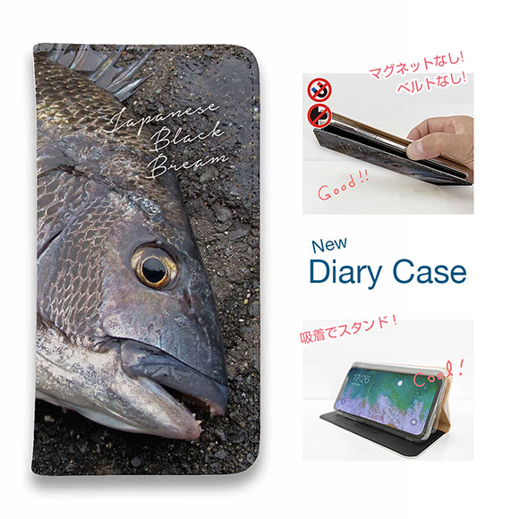 スマホケース 手帳型 ベルトなし マグネットなし iPhone17 Pro Max iPhone Air iPhone16e Pro Max 16 Plus 15 Pro Max 14 Plus Xperia 10 VII Galaxy AQUOS Pixel10 Pro XL 釣り 魚 ルアー 年無しチヌ(クロダイ)