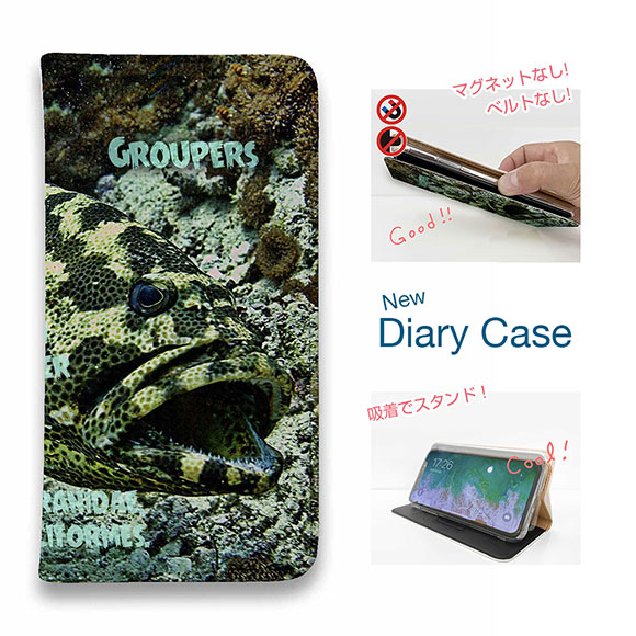 スマホケース 手帳型 ベルトなし マグネットなし iPhone17 Pro Max iPhone Air iPhone16e Pro Max 16 Plus 15 Pro Max 14 Plus Xperia 10 VII Galaxy AQUOS Pixel10 Pro XL 釣り 魚 ルアー グルーバー・フィッシュ(ハタ類) アメコミ風