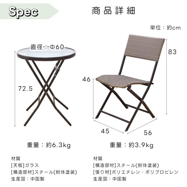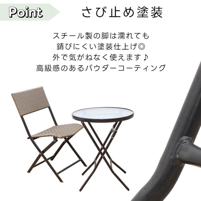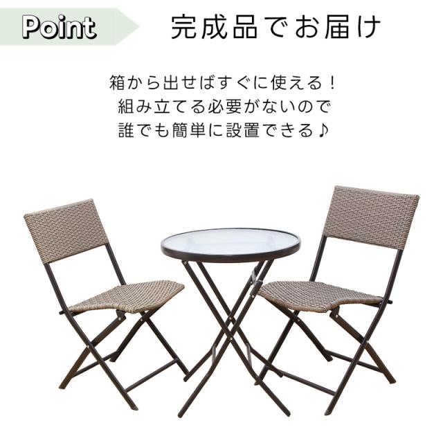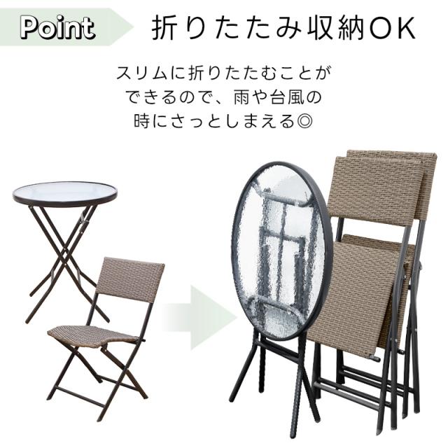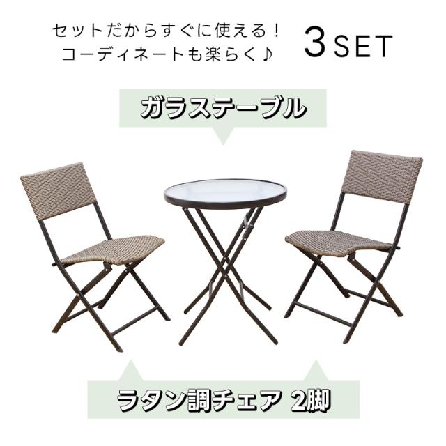 ガーデンテーブルセット ラタン調 おしゃれ 3点セット 籐風 ガーデンテーブル 折りたたみ カフェ風 エスニック カフェテーブルセット アジアン 屋外 ダイニングセット ガーデンセット オリエンタル ガラステーブル ラタンチェア テラス 翌日配送