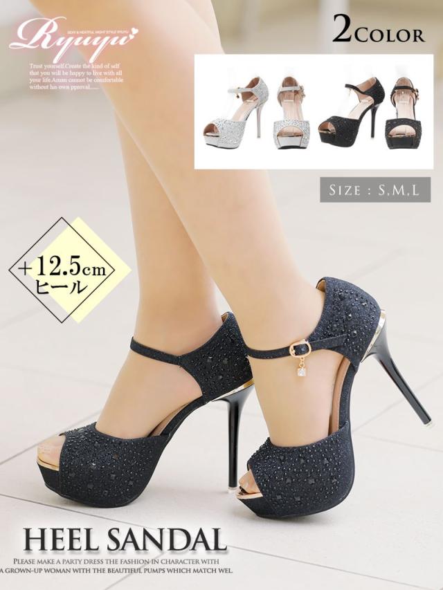 キャバサンダル Ryuyu オープントゥサンダル 映え くつ ビジュー チャーム付き キャバ サンダル キャバサンダル 靴 キ