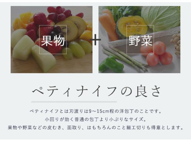 | 商品説明 | 丸穴の空気孔と上部のリブの構造により、野菜や果物などを薄く輪切りにする時 切ったものが包丁にくっつきにくいように考案した製品です。 ハムやソーセージの輪切りや薄切り、キュウリやダイコンの輪切り、 トマトやレモンなど水分を多く含んだものの薄切りに便利な頼れる包丁です。 小包丁は細工や飾り切りがしやすいように先はとがっています。 |