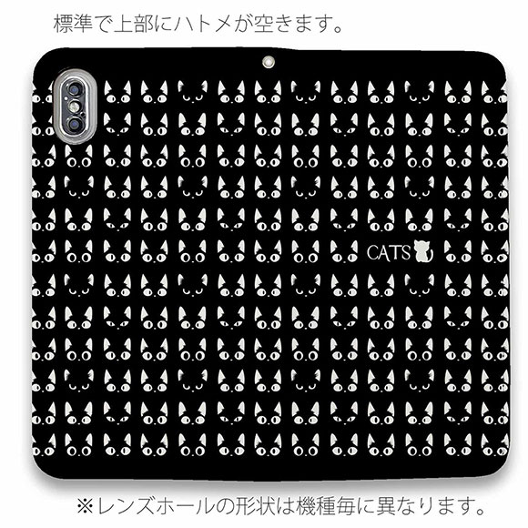 | 商品説明 | 黒猫の印象的な目と耳をアイコン化したデザインです。黒いスマートフォンにはやはり黒のデザインが似合います。待望の手帳型登場! |