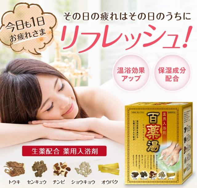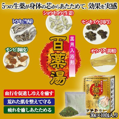薬用入浴剤 百薬湯 ひゃくやくとう 温浴効果 癒し 生薬 血行 促進 冷え センキュウ ショウキョウ オウバク トウキ チンピ