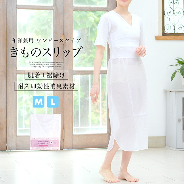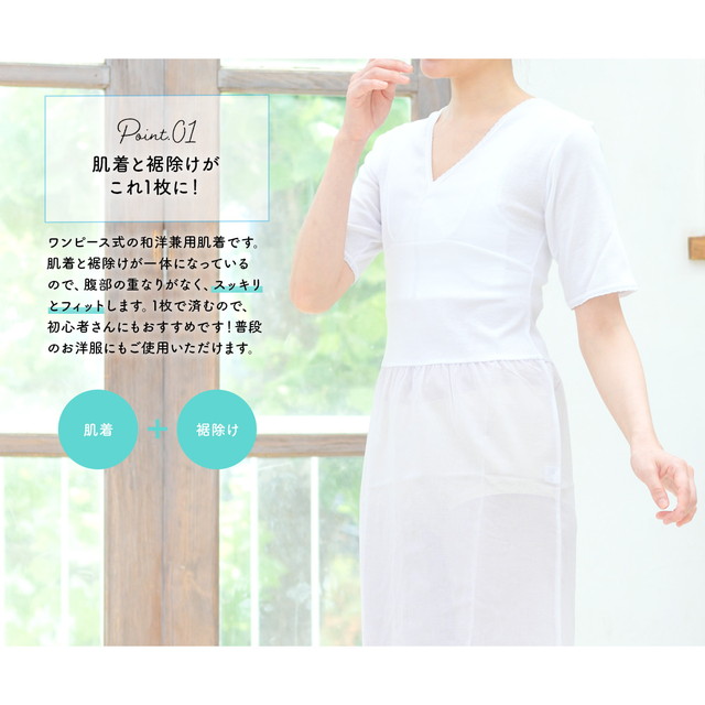 着付けの際に最初に着る肌襦袢と裾除けを合わせて一枚にしたワンピースタイプの肌着です。