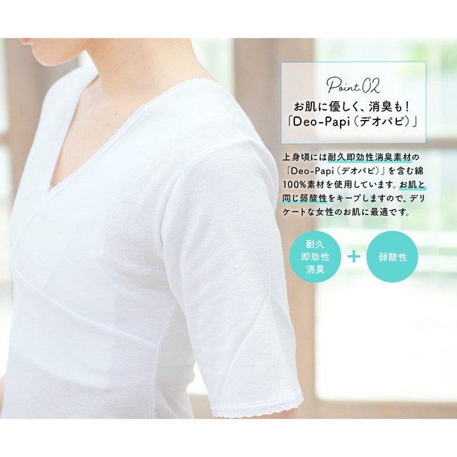 「Deo-Papi(デオパピ)」を含む綿素材はお肌と同じ弱酸性をキープしますので、デリケートな女性のお肌に最適です。