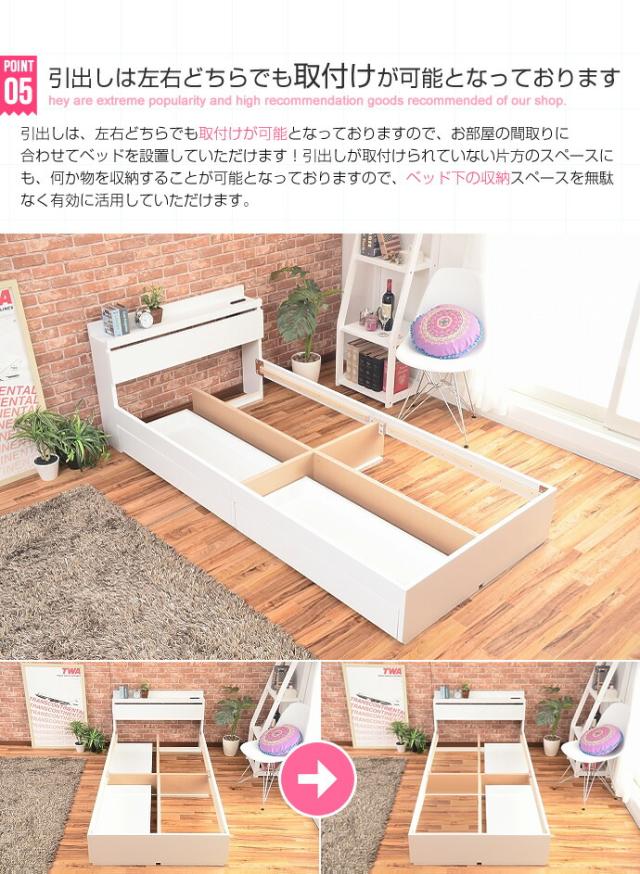 | 説明 | たっぷり収納付きベッド。便利な引出し収納が付いたシンプルなデザインの収納付きベッド。 サイズは【ダブルサイズ】となっております! |