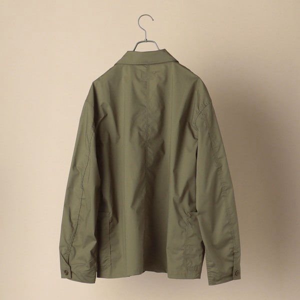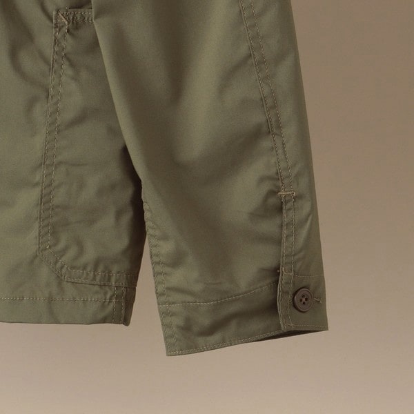 今回、こちらのシリーズから適度なハリ感のあるポリエステル/コットン混紡糸を使用したストレッチ入りウェザークロス生地のカバーオールが登場。組織密度が高く、丈夫で光沢のある生地感となっております。