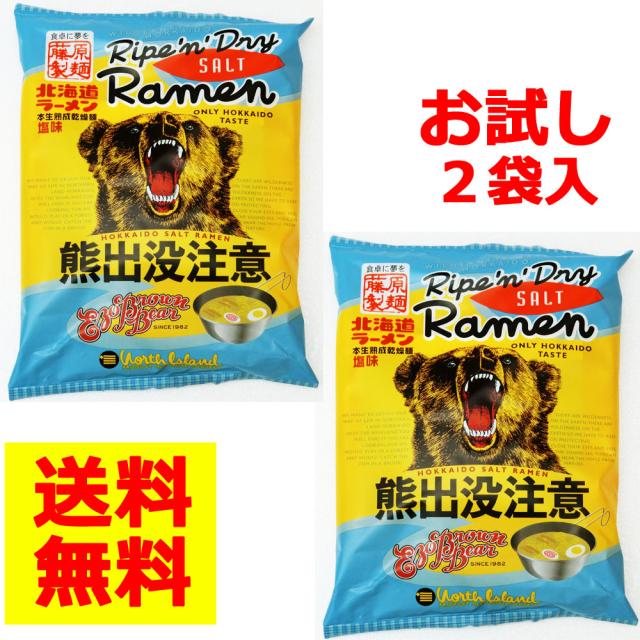 本生熟成乾燥麺 熊出没注意ラーメン 塩味 お試し2袋セット【送料無料】