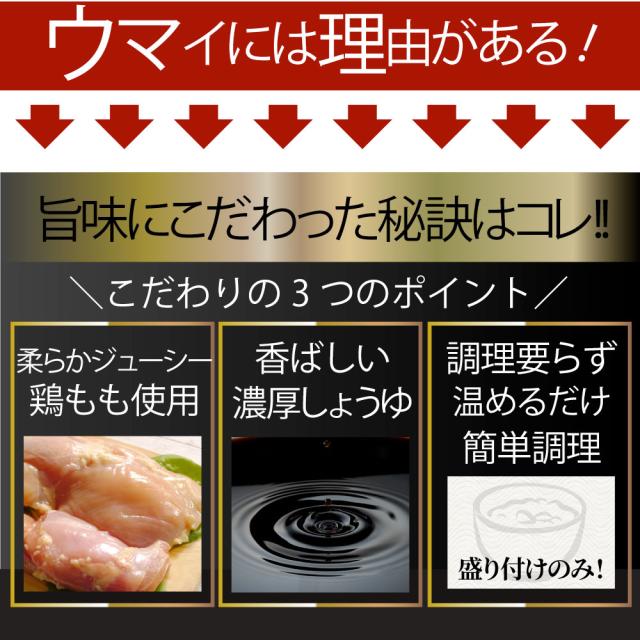 【原材料】鶏肉、でん粉、砂糖、みりん、食塩、しょうゆ/調味料(アミノ酸)カラメル色素、、ポリリン酸Na(一部に鶏肉、大豆、小麦を含む)