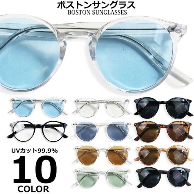 ボストン サングラス メンズ レディース UVカット 伊達メガネ 眼鏡 めがね カラーレンズ