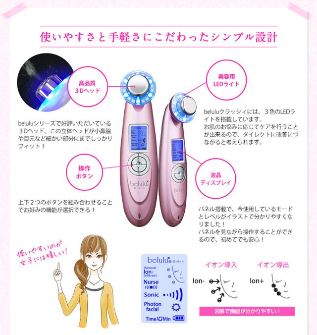 美ルル クラッシィ 美ルル専用美容液付き (送料無料) 美顔器 belulu classy 超音波 イオン導入 イオン導出 光エステ LED クレンジング 毛穴ケア