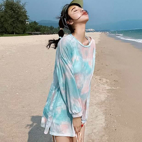 腰まで隠れるトップスでさり気なく体型をカバーしてくれちゃう。