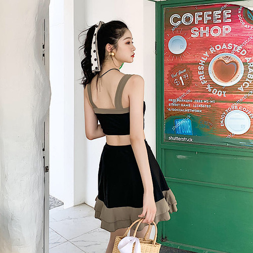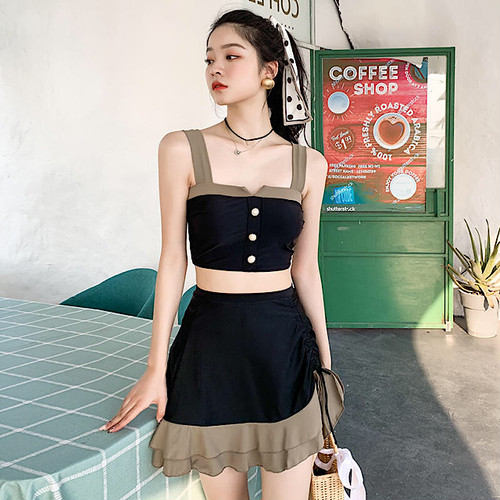 モカブラウンとブラックのシックなセパレート水着です。