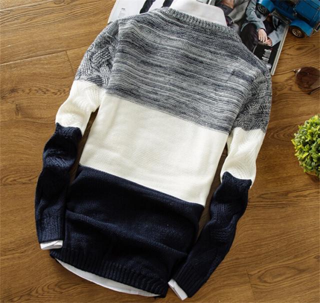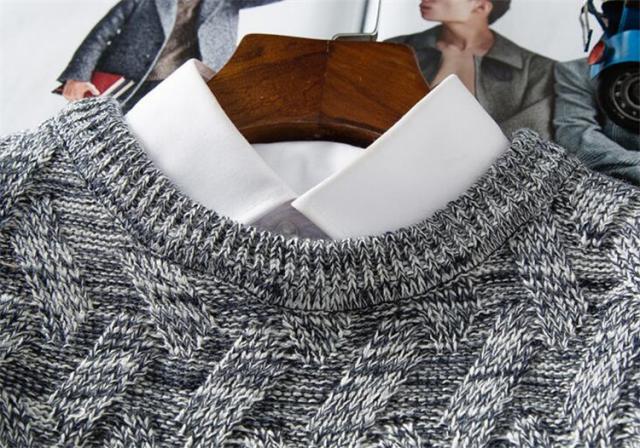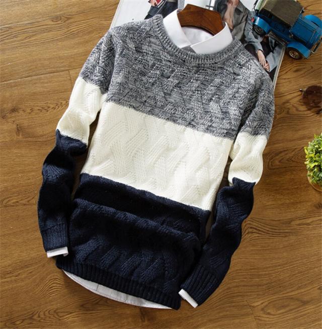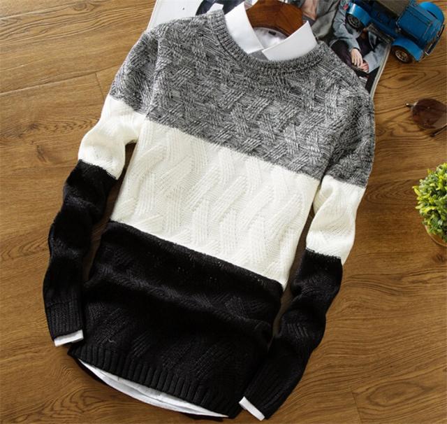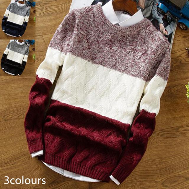 ニット セーター メンズ 編み込み クルーネック 切替 細身