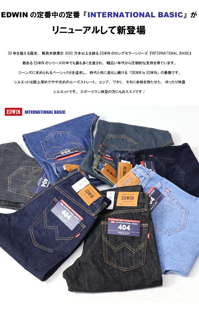 大きいサイズ EDWIN エドウィン インターナショナルベーシック 404 ゆったりストレート 股上深め 日本製 デニム ジーンズ 定番 送料無料 エドウイン EDWIN E404 LOOSE