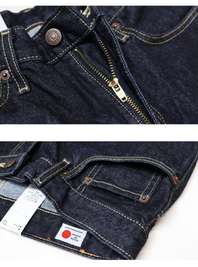 1981年のデビュー当時に使用していた強度が高く肌触りの良いこだわりのRING糸に回帰。13.75オンスデニム生地を使用し、インディゴの濃度を変えて加工によって使い分けています。ワンウォッシュ用にはインディゴ濃度にこだわり、濃く、糊の濃度も微妙に調整した綾立ちの美しい生地を使用。ストーンウォッシュ用には、やや浅めのインディゴで、すっきりとしたアタリ感が出やすい生地を使用。