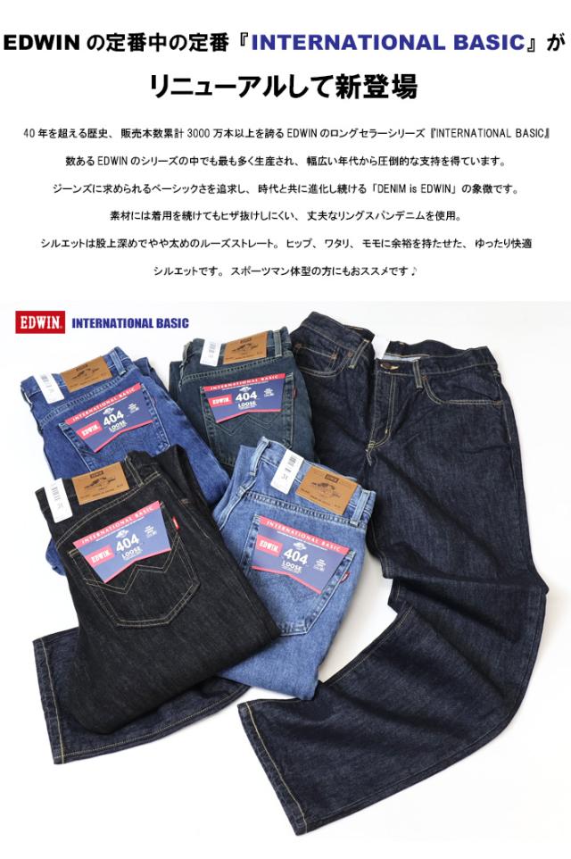 大きいサイズ EDWIN エドウィン インターナショナルベーシック E404 404 ゆったりストレート 日本製 デニム ジーンズ パンツ メンズ 定番 送料無料