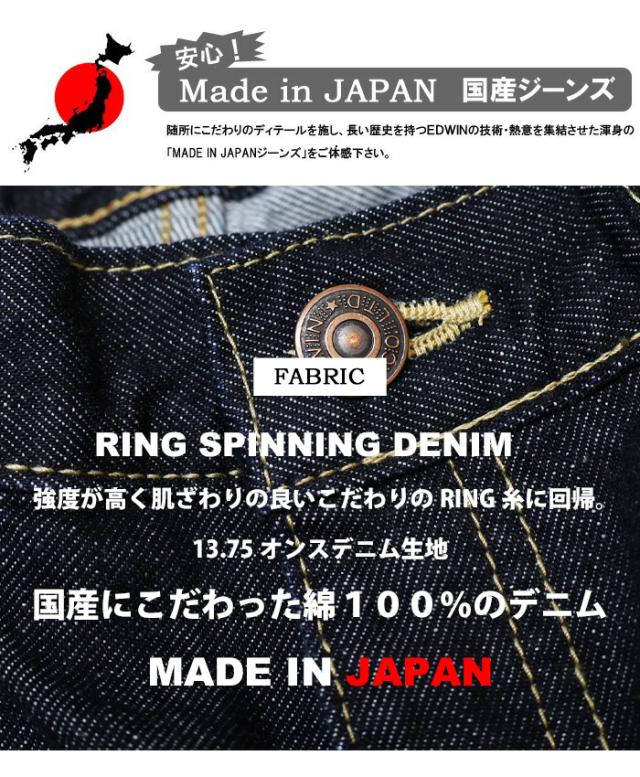 デビューから45年、マイナーリニューアルを重ねながら計算し尽くされたシルエットをベースに、現代の日本人体型に合わせてフィット感と穿き心地をさらに追求。EDWINを代表するデニムを、誇りのMADE IN JAPANでお届けします。
