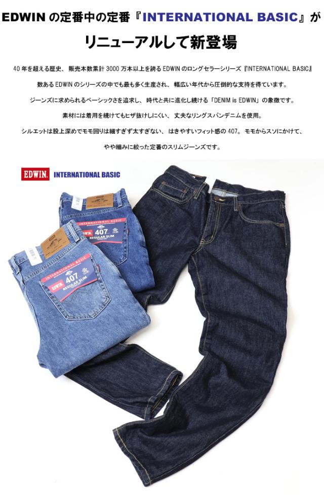 EDWIN エドウィン インターナショナルベーシック E407 407 ふつうのスリム テーパード 日本製 デニム ジーンズ パンツ メンズ 定番 送料無料