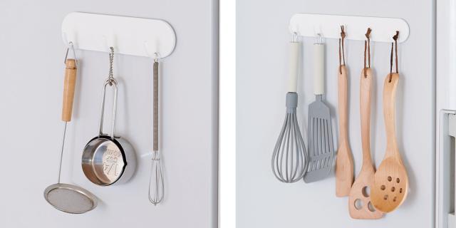 冷蔵庫サイドに付けられる、マグネット付きの便利な3連フック