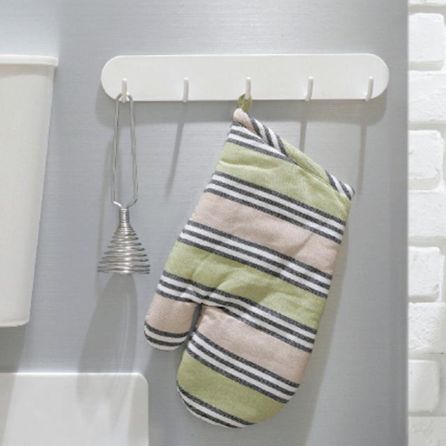 冷蔵庫サイドに付けられる、マグネット付きの便利な5連フック