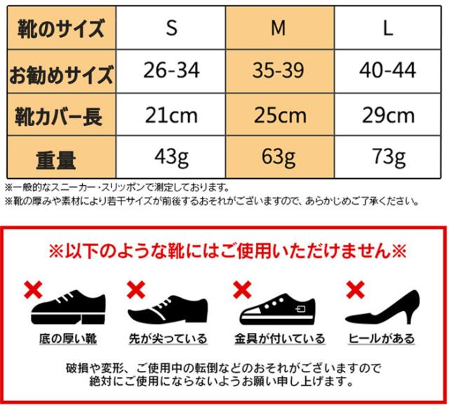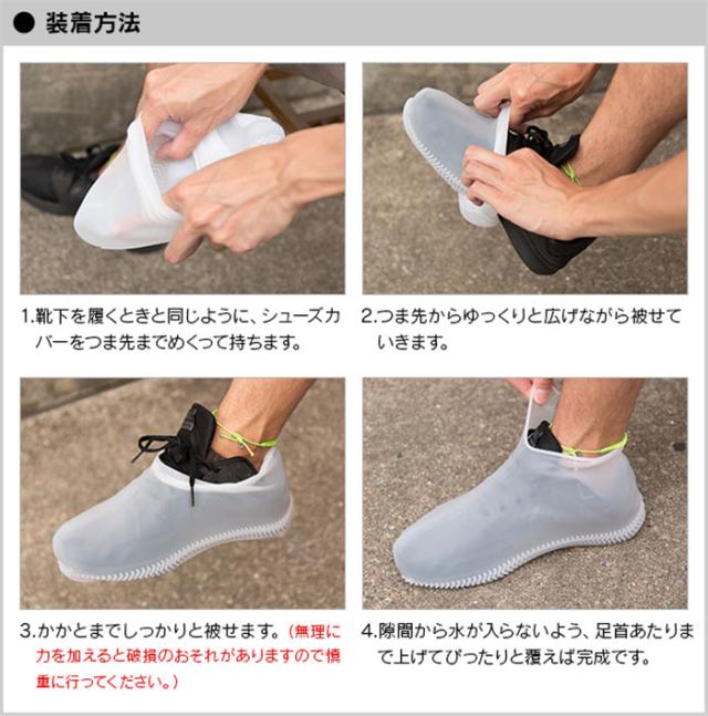 使い方は簡単!普段使っている靴に上から被せるだけ。靴の上から靴下を履くような感覚で装着でき、雨や泥などの汚れからシューズを守れる便利アイテムです。