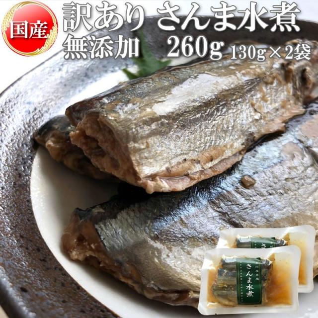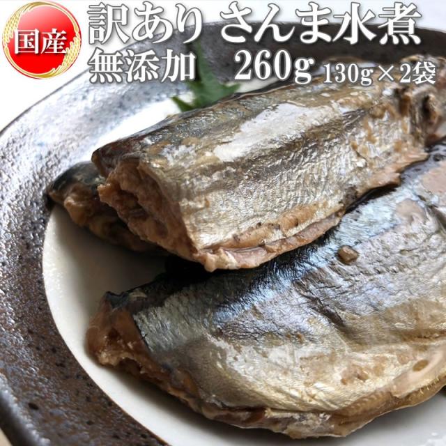 在庫処分 さんま 水煮 無添加 国産 260g 訳あり メール便 送料無料 [さんま水煮130g×2袋 BS] NP 即送