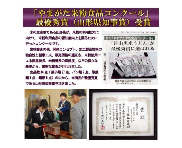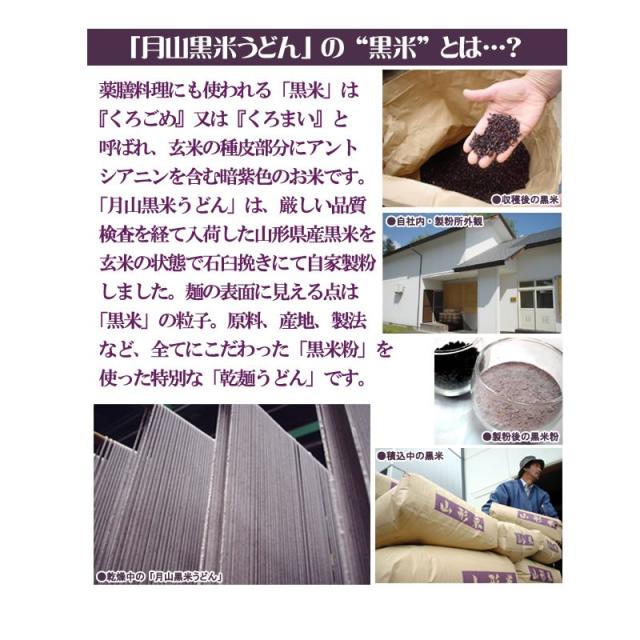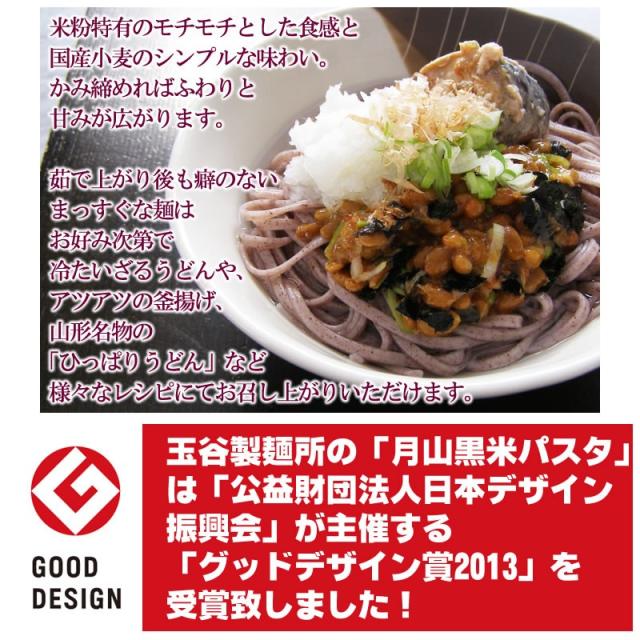 薬膳料理にも使われる「黒米」は「くろごめ」又は「くろまい」と呼ばれ、玄米の種皮部分にアントシニアンを含む暗紫色のお米です。「月山黒米うどん」は、厳しい品質検査を経て入荷した山形県産黒米を玄米の状態で石臼弾きにて玉谷製麺所にて自家製粉しました。麺の表面に見える点は「黒米」の粒子。原料、産地、製法など、全てにこだわった「黒米粉」を使った特別な「乾麺うどん」です。米粉特融のモチモチとした食感と国産小麦のシンプルな味わい。噛みしめればふわりと甘味が広がります。茹で上がり後も癖のないまっすぐな麺はお好み次第で冷たいざるうどんやアツアツの釜揚げ、山形名物の「ひっぱりうどん」など様々なレシピにてお召し上がりいただけます。注意事項・当商品はメール便にて発送でポスト投函となります。そのため、代引き支払い不可、配達日時指定不可となりますことをご了承お願いします。