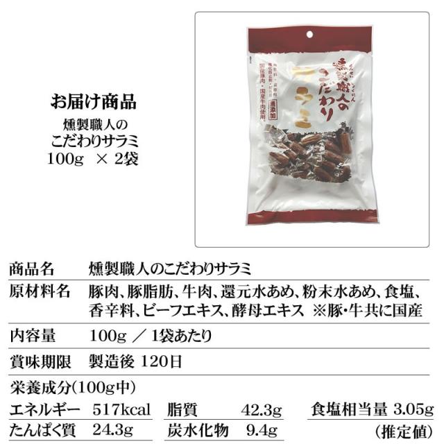 [送料無料][こだわり][サラミ][メール便][おつまみ][贅沢] 山形県では、昔から家畜の飼育が盛んで、畜肉(牛肉・豚肉)の生産、加工と保存の方法として熟成や燻製の技術が発達し、ハムやサラミ文化の礎を築いたと言われています。風味堂は、畜産とハム製造を兼務の後に、サラミの製造へ転じた前身「旧(株)天童ハム」が培った略々50年の歴史を継承し、体制も一新して2009年2月に再スタートを切った新しい会社ですが、創業来に使用の直火焚き窯や巧みな技の燻製職人を大事にし“安心安全”の本格サラミを提供しています。商品のほとんどが最低限の添加物に抑え、肉の味を活かすため結着材料(ゼラチン。植物性たん白・乳たん白等)を使用していません。豚脂も一度ボイルした背油のみを使用しているためジューシーで脂っぽさがありません。こだわりサラミ 原材料:豚肉、豚脂肪、牛肉、還元水あめ、粉末水あめ、食塩、香辛料、ビーフエキス、酵母エキス