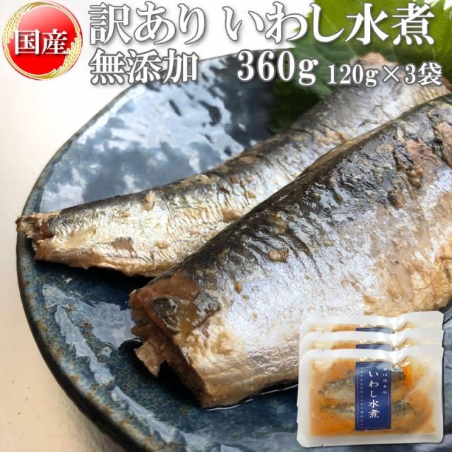 在庫処分 いわし 水煮 無添加 国産 360g 訳あり メール便 送料無料 [いわし水煮120g×3袋 BS] NP 即送