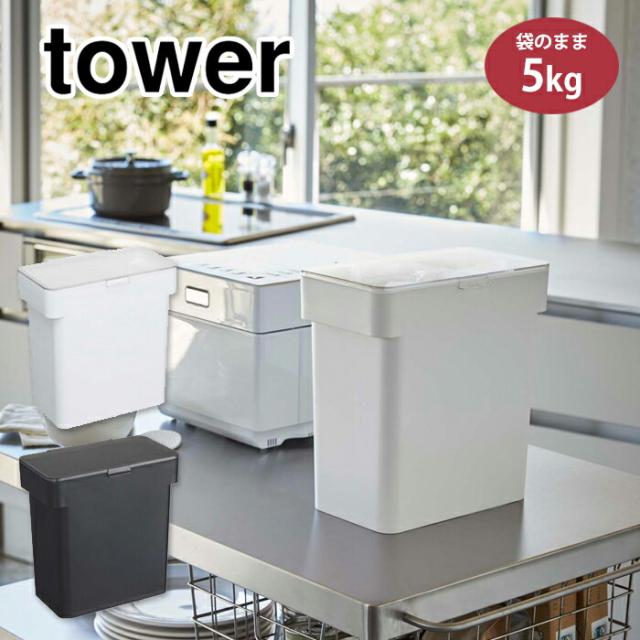 tower タワー 密閉 袋ごと米びつ 5kg 段々米計量カップ付き ホワイト 3375・ブラック 3376【米びつ/米櫃/米 保存容器/送料無料】