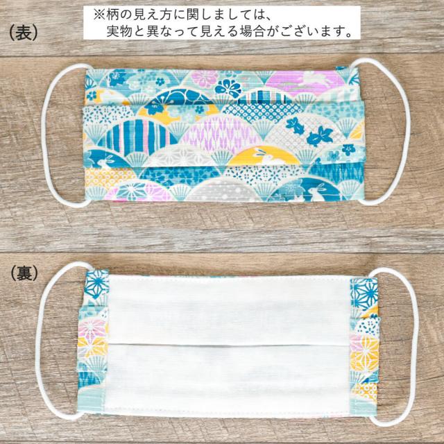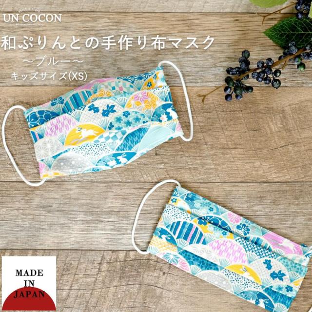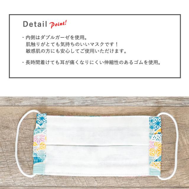 布マスク 子供マスク プリーツ 和柄 日本製 綿 キッズ ガーゼ 敏感肌 肌に優しい ブルー 送料無料 メール便2ポイント