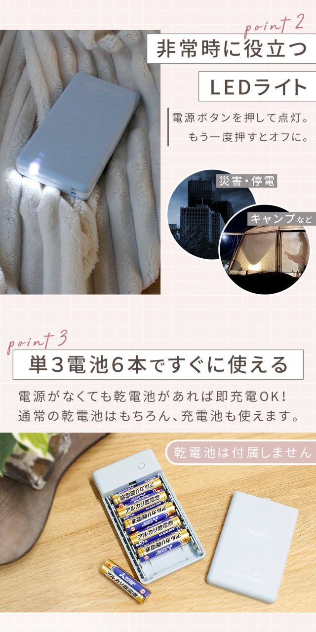 乾電池式/モバイルバッテリー/送料無料/スマホ/充電器/LEDライト/iPhone5/iPhone6/iPhone7/iPhone8/iPhone9/iPhoneX/iPhoneXR/iPhoneXsR/iPhone11/iPhone11pro/iPhone12/iPhone12Pro/iPhone12Pro max/iPhone12 mini/iPhone13/iPhone13Pro/iPhone13Pro max/iPhone14/iPhone14Pro/iPhone15/iPhone15Pro/アンドロイド/android/スマートフォン/持ち運び/単三電池6本/緊急時/停電/出張/旅行/出先/充電/スマホ充電/備え/防災/防災グッズ/LED/ライト/非常用ライト/乾電池モバイルバッテリー/防災/防災グッズ/災害/災害グッズ/停電/非常時/ケーブル付き/ケーブル内蔵/タイプC/Type-C/micro/マイクロ/タイプCケーブル/マイクロケーブル/USB/災害/地震/台風/停電/乾電池式充電器/スマホ充電器/USB充電/もしもの備え/備えて安心/タブレット/携帯充電器/停電対策/ゲーム機器/電池でスマホ充電器/電池で充電/TN-6BTCA-WH