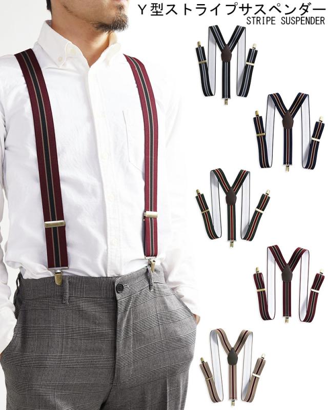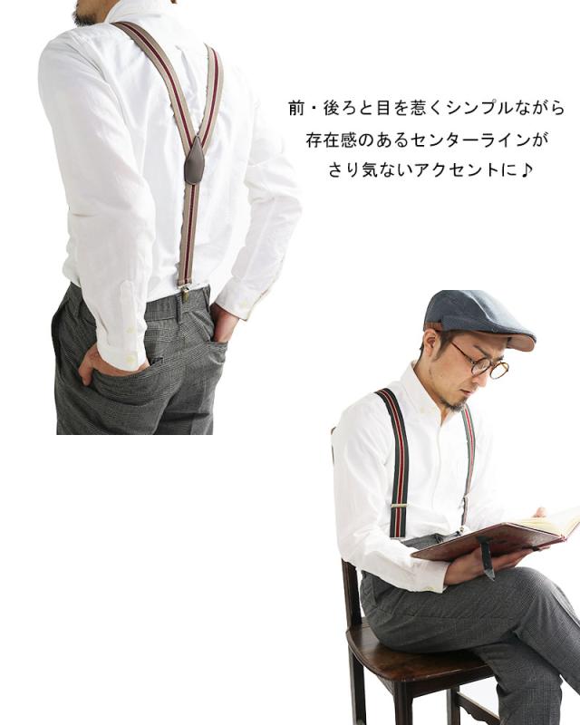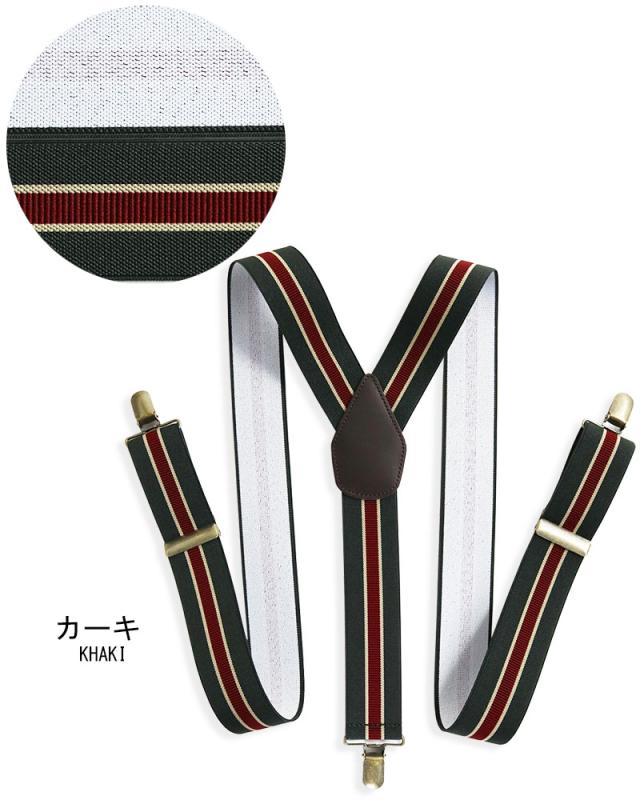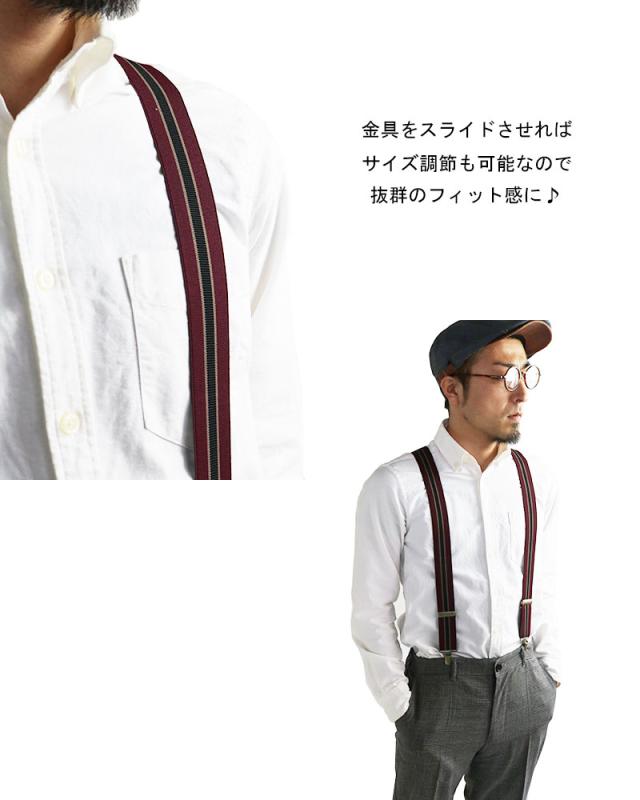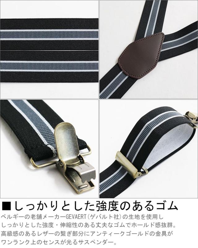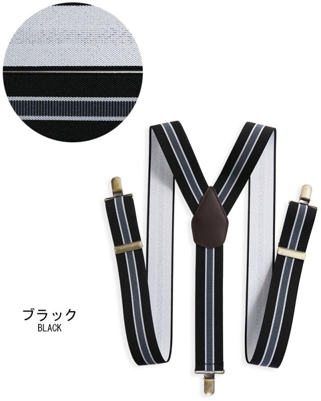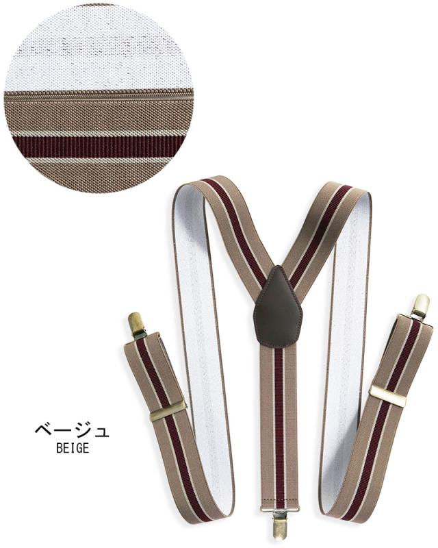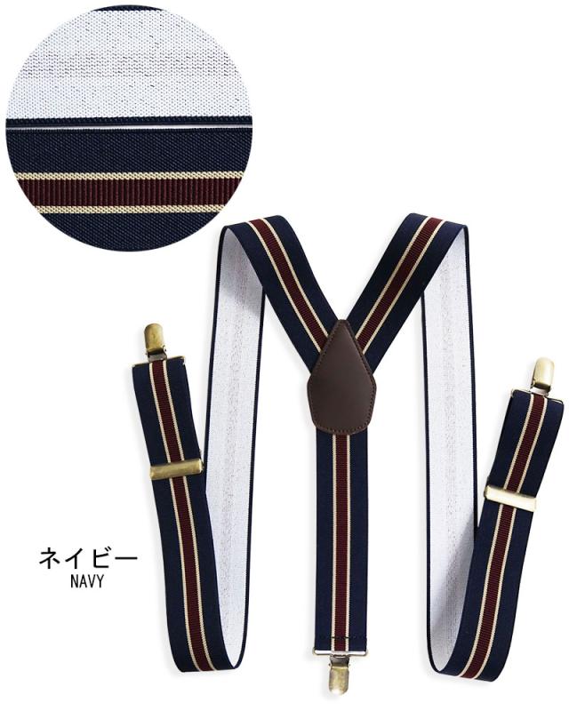 サスペンダー メンズ Y型 太幅 3.5cm幅 ストライプ 日本製 太め 35mm幅 吊りバンド ズボン吊り ブレイシーズ