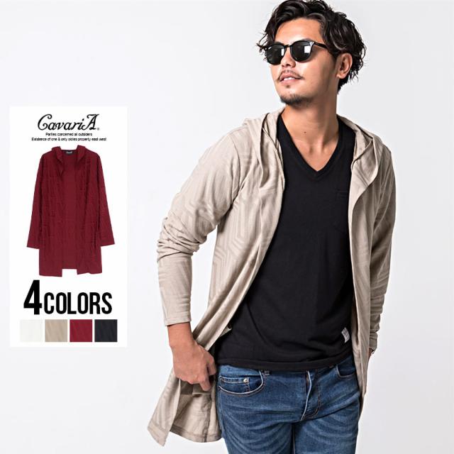 カーディガン メンズ 長袖 CavariA キャバリア リンクスジャガード編み幾何学柄フード付き長袖ガウン 即日発送 トップス 羽織り フーディー ロング丈 無地 シンプル ホワイト ベージュ ワイン ブラック 白 黒 M L きれいめ 秋 [CAST20-107]