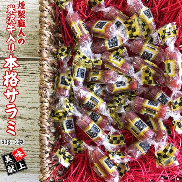 サラミ おつまみ 燻製職人の[米沢牛入り本格サラミ2袋 L2] 60g×2袋 おつまみ 送料無料 YP 即送 メール便
