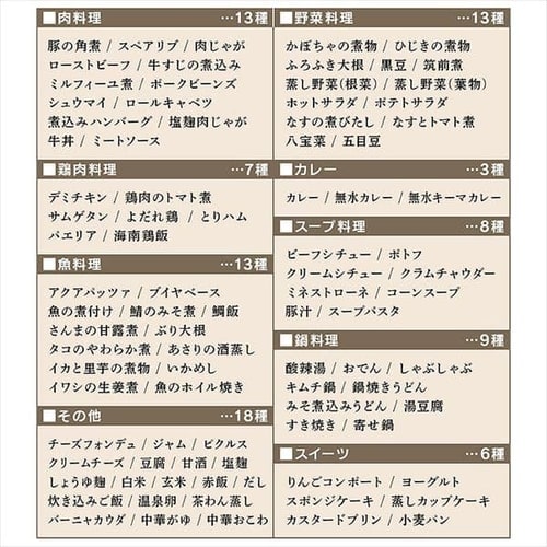 自動メニュー90種類搭載。バラエティー豊かな食事がボタン一つでかんたんに。