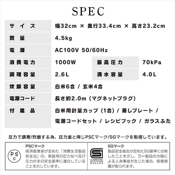 白米用計量カップ(1合)、蒸しプレート、電源コードセット、レシピブック、ガラスふた