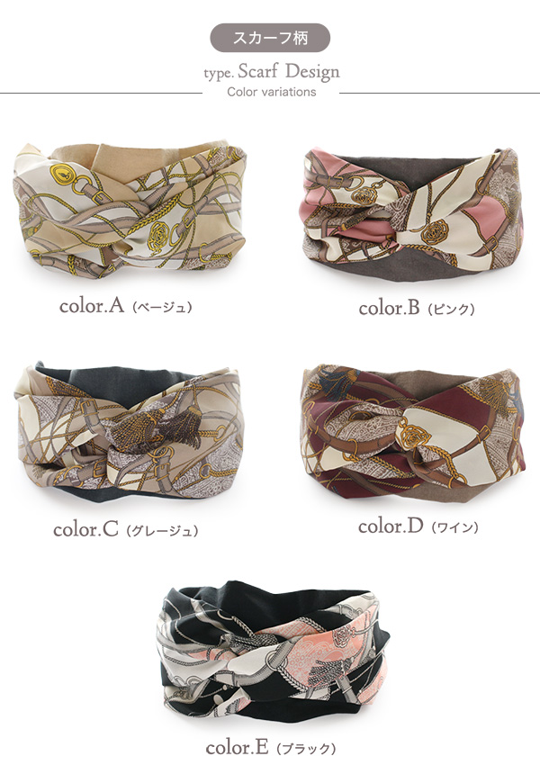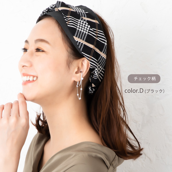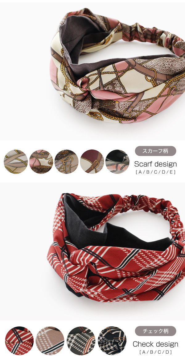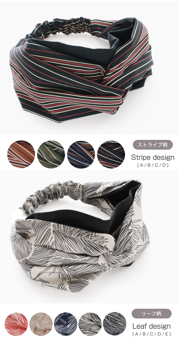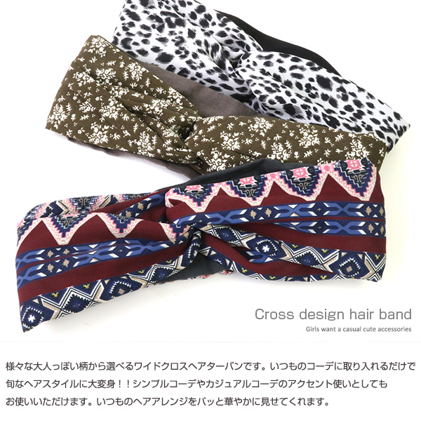 様々な大人っぽい柄から選べるワイドクロスヘアターバンです。いつものコーデに取り入れるだけで