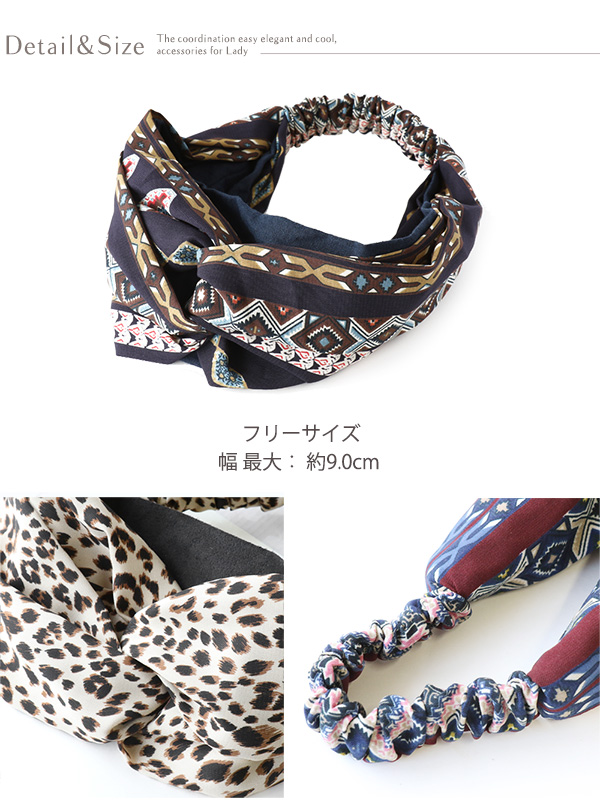 ヘアバンド ヘアターバン 幅広 カチューム 9種類 デザイン クロス ツイスト スカーフ ヘアアレンジ エスニック アニマル レオパード 柄 ヘアアクセサリー レディース 女性 ワンポイント 大人 可愛い カジュアル カーキ ベージュ ブランド