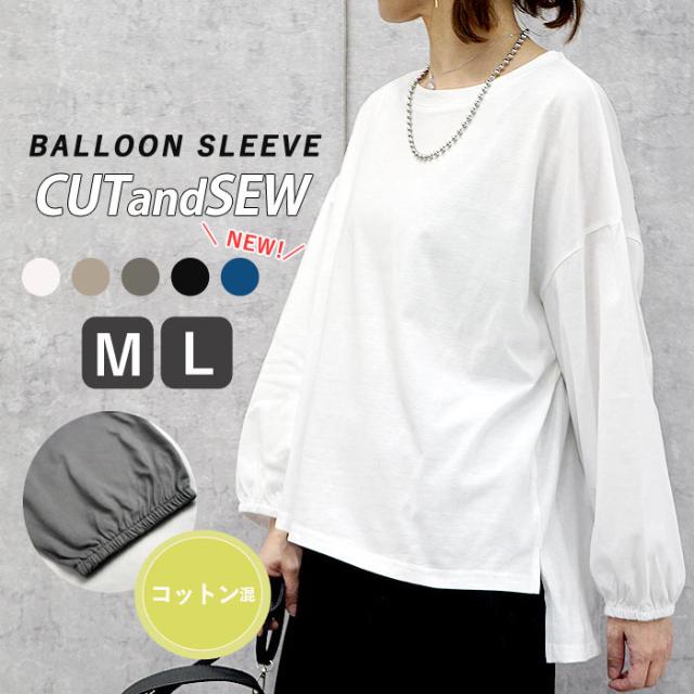 秋新作 バルーンスリーブ カットソー 長袖 レディース カジュアル トップス [郵1.5]^t764^ ★