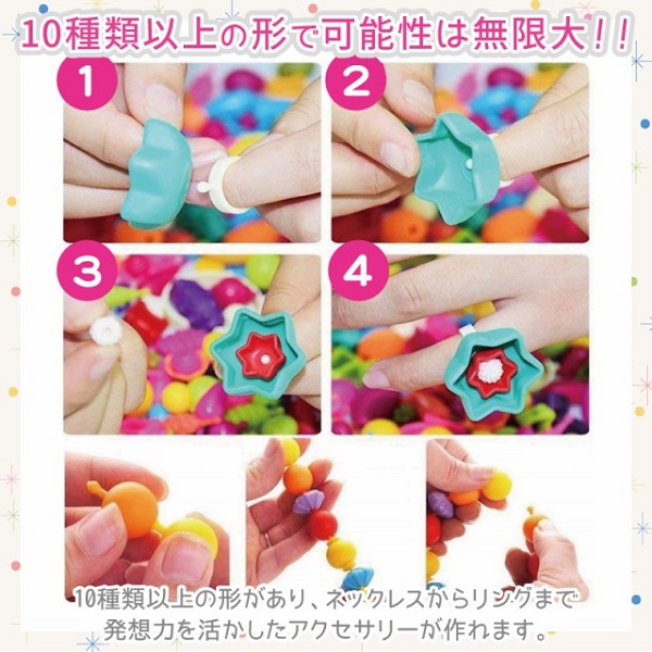 ビーズアクセサリー キット 子供 ハニーアートビーズ 1000個入り おもちゃ 女の子 ビーズ ネックレス 指輪 知育玩具 プレゼント