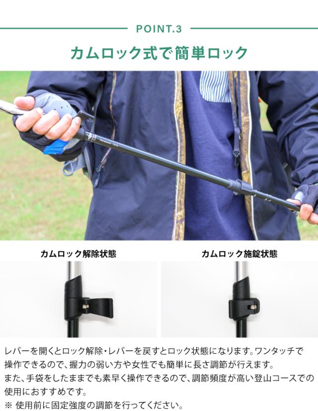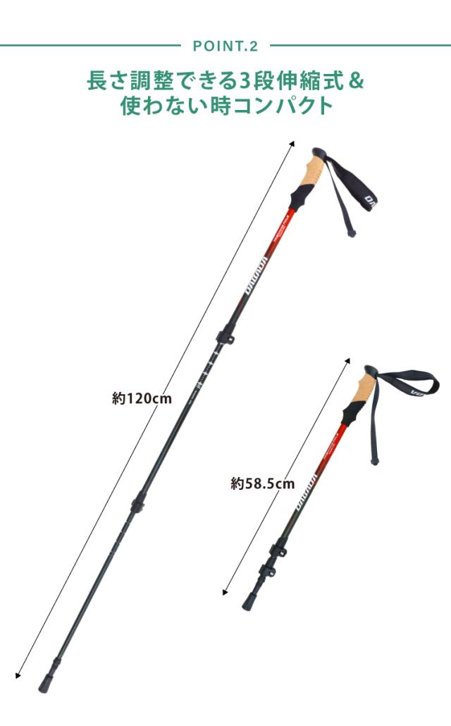 アルミ製 トレッキングポール カムロック式 SGマーク取得 収納袋付き 最長120cm/最短58.5cm 2本セット 登山杖 登山用品 ダバダ