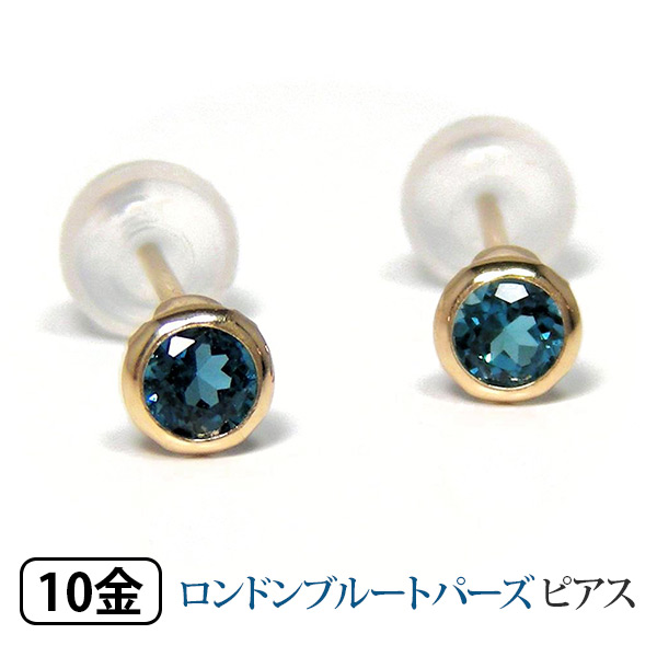 ロンドン ブルートパーズ ピアス イエロー ゴールド K10YG 10k 10金 伏せ込み フクリン