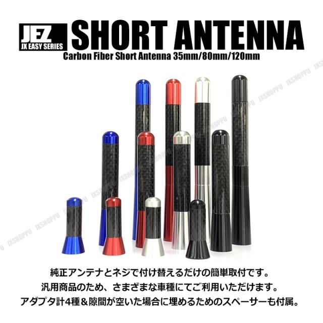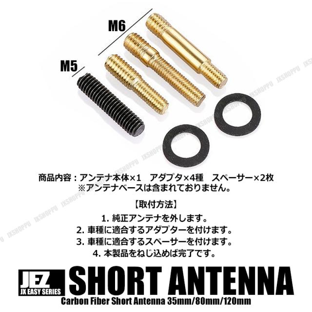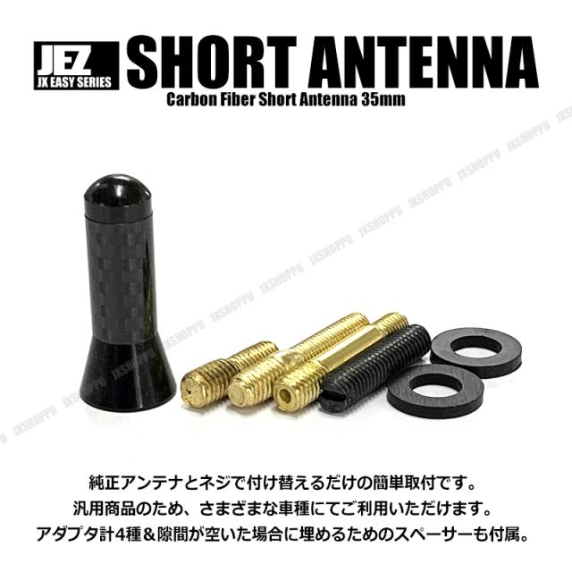 カーボンショートアンテナ [35mm] [ブラック] ネジ径 M5 M6 リアル アンテナ エクステリア スペーサー付属 車載 汎用 外装 送料無料